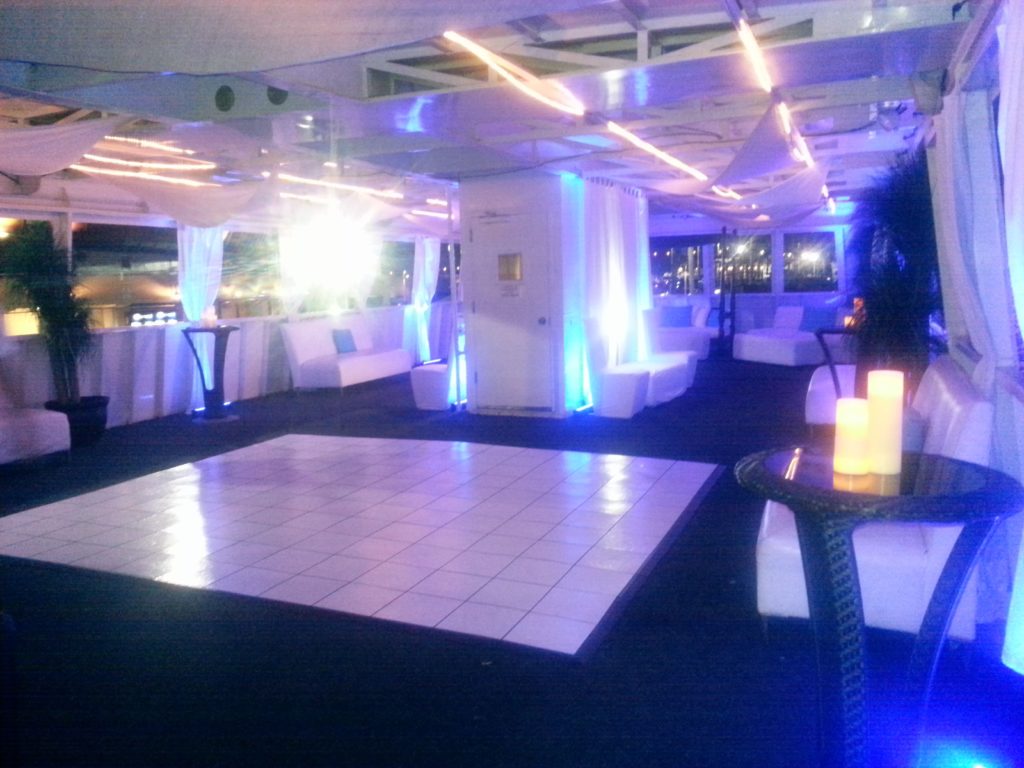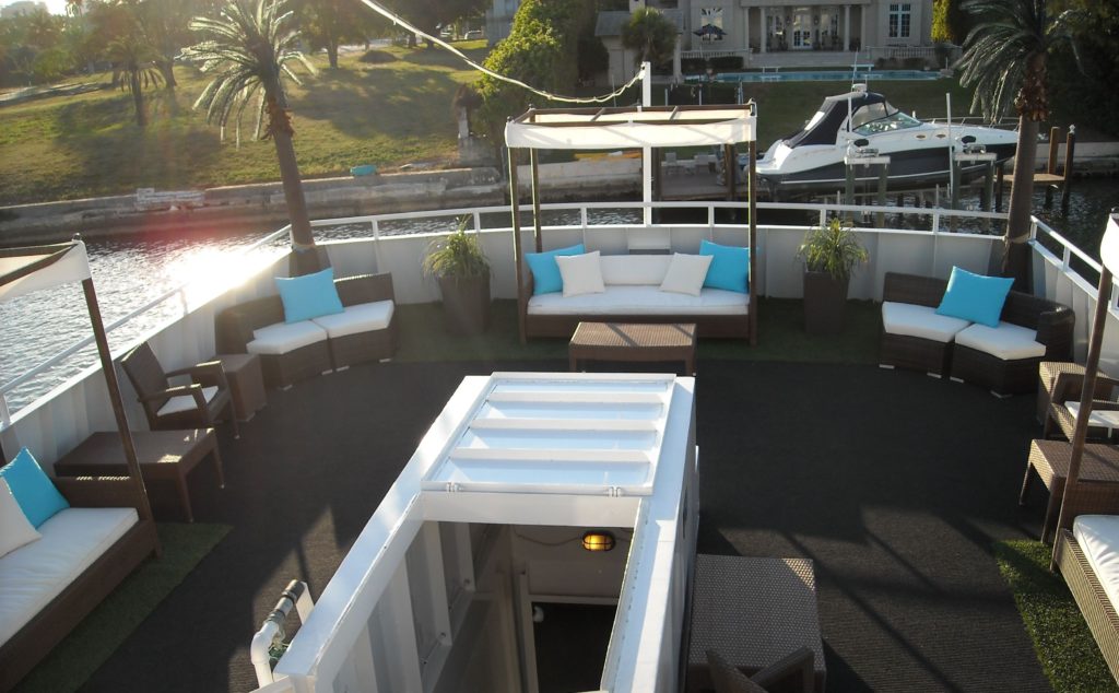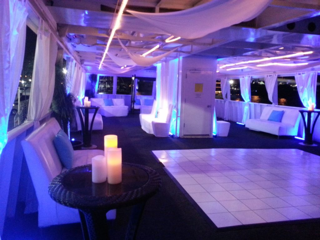 Three very unique decks allow your guests to enjoy multiple themes throughout the venue. From crystal chandeliers in the art deco dining room, to a South Beach themed all-white dance lounge with glowing DJ Booth, and tropical outdoor cabana deck, this outstanding party boat has something special for every occasion and is truly the most unique vessel in South Florida.