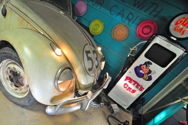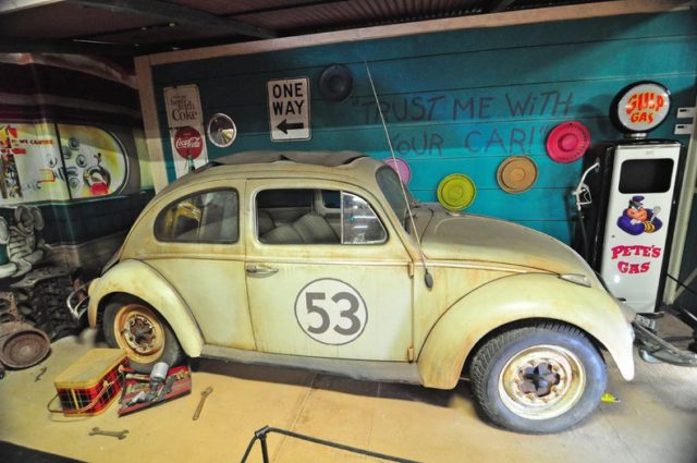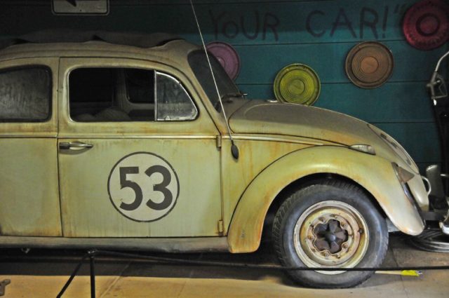 A total of 35 Herbies were built for use in the Disney film, Herbie, Fully Loaded, starring Lindsey Lohan.This screen used version of Herbie is known and the Junk Yard Personality Car. It has seven miles of wiring, dozens of electric motors, servos and electronics to bring Herbie to life.A crew of six people would operate the switchboard which would move Herbie’s, eyes, bumper, hood, doors, visors, antenna and more to give him is human like characteristics.The rust and dirt you see on this car is known as Hollywood Make Up. It’s fake! Volo Auto Museum acquired the car directly from Disney Studios. Authentication includes a title still in Disney’s name, registration and other Disney documents.