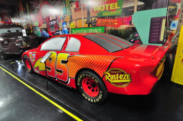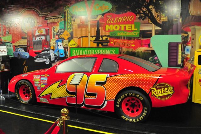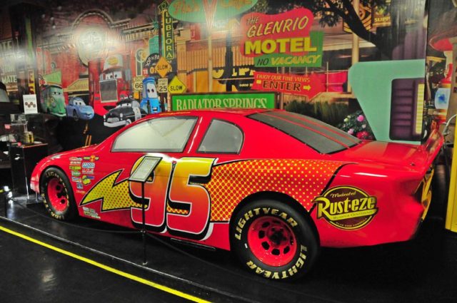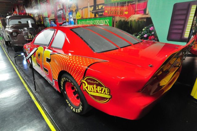 Recognized from the hit Disney Pixar film CARS. Lightning McQueen whose voice was narrated by Owen Wilson was the star Race Car that became stranded in the small town of Radiator Springs.This Lightning McQueen was built as a promotional exhibition vehicle out of a real NASCAR and is boasting over 800 Horse Power. It has custom made LIGHTYEAR tires, molded smile with teeth, widened body, an exaggerated rear fin and more.