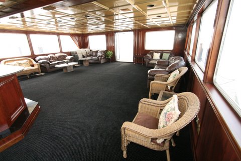 This yacht is tastefully decorated with a mahogany bar on the upper deck and an ample dancing area on the main deck. At 110′ long she is certified to carry up to 150 people. The yacht provides you with a magnificent view of the waterway whether it is the Hudson River or Long Island Sound. The yacht’s home base will be Manhattan; however she will be able to accommodate a departure in the tri-state area.