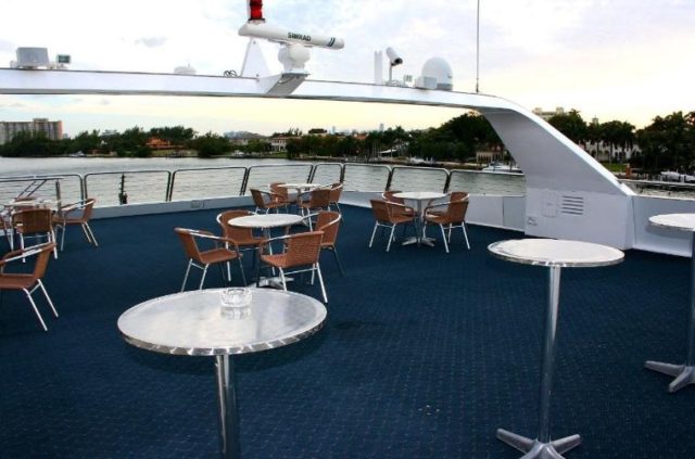 This Yacht’s spacious and ample convention space allows for additional charter additions like DJ service, live-bands, cigar rollers, casino tables, comedians and magicians.