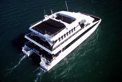 Our PREMIERE Cosmopolitan mega-cruiser has 3 large decks to accommodate up to 400 passengers and features an 8-foot ceilings and exceptionally large spaces. The majestic ballroom is fully air conditioned and features unique, modern windows that allow for entirely unobstructed views. Plus, a spectacular sky deck and several open air decks scattered throughout the vessel allow for unique entertaining options. Her Austral manufactured catamaran design of twin hulls, offers the most stable and comfortable cruising experience on Biscayne Bay.
