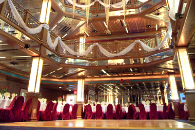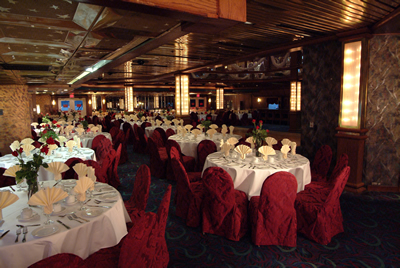 This is the largest luxury party ship in the North East (30,000 square feet). The Majesty has five dining rooms, an atrium with glass enclosed elevator, observation deck and can accommodate up to 1,200 guests.