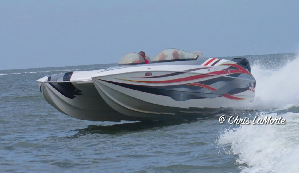 Experience the Ultimate Rush Aboard our 32′ Custom Skater Cat Offshore Race Boat!