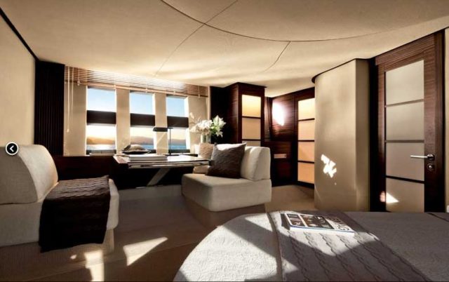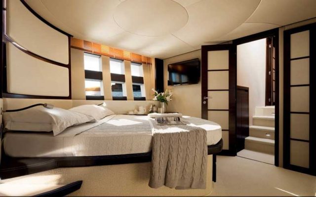When it comes to elegant design, whether you’re talking fashion, cars or Sophia Loren, Italians are hard to beat. The same holds true for yachts, like this Azimut 62S. For 6 guests in 3 cabins with separate crew cabin for 2 at stern. Master cabin, full beam midship, large upper saloon and dining, lower gallery. External dining, wet bar with sink, table with sofa, large sunbed and tender garage.