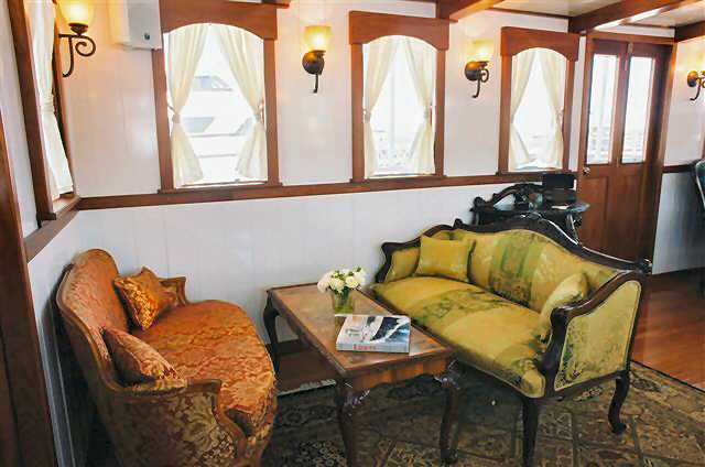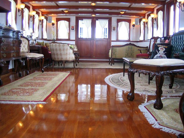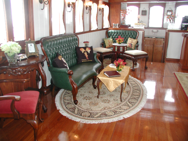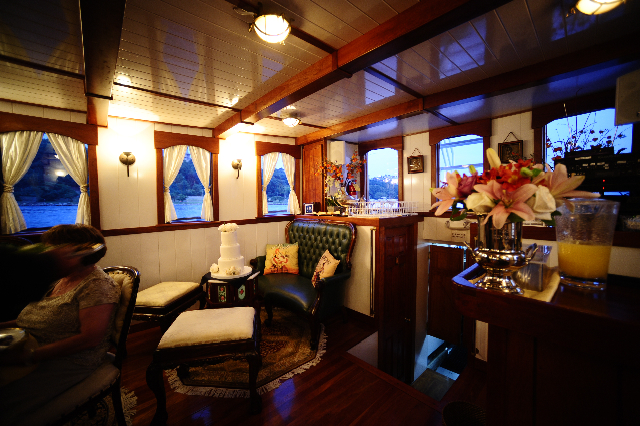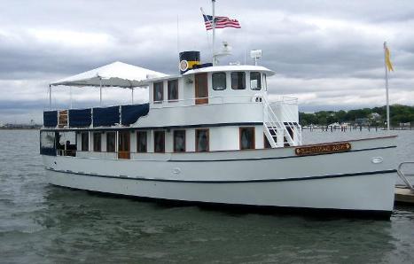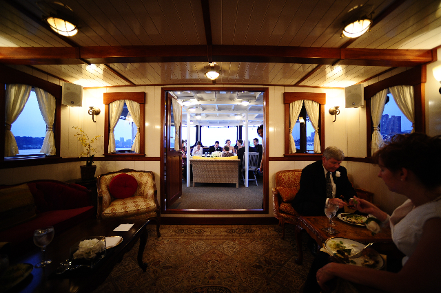 This recently launched distinctive motor yacht offers luxurious cruising in a tastefully-appointed main cabin, lovely fantail veranda and spacious, open air upper deck. The vessel’s classic steamboat exterior lines are combined with sophisticated Roaring Twenties, Great Gatsby interior. Her lines replicate the magnificence of a by-gone era combined with today’s modern amenities. Guests on-board will find her design to be a fresh, sophisticated upgrade from the less intimate charter vessels cruising NY harbor.