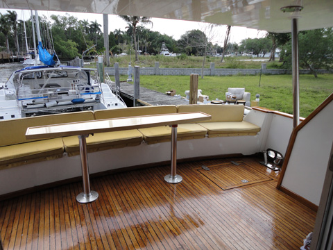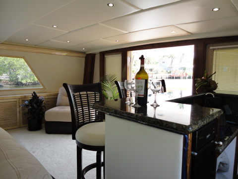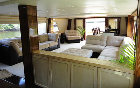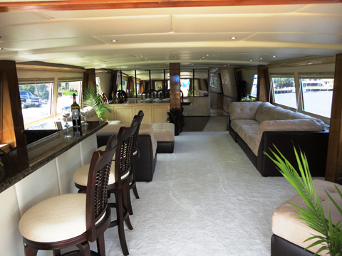 Elegant main deck salon, full service bar, formal dining room, and fully equipped galley. Aft deck observation
