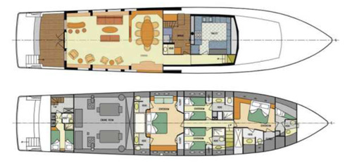 Yacht with 5 staterooms. Accommodate up to 12 guests for day and evening cruises as well as