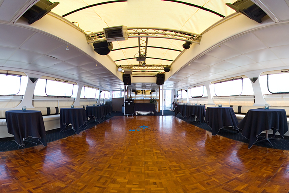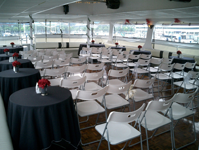 Experience breathtaking views of the spectacular New York City skyline, while dining on an exclusive menu created by Chef Linda Tintle, a French Culinary Institute-trained private chef. Dance under the stars on New York’s largest floating dance floor. Or simply relax and enjoy the view on the wrap-around deck seating. Festiva is the perfect location for parties of 40-100 people comfortably (certified for 149 passengers). It features two decks, removable top deck canopy, dance floor, experienced DJ, sound and light system, karaoke, two bars, buffet dining, day and night cruises, and friendly staff.