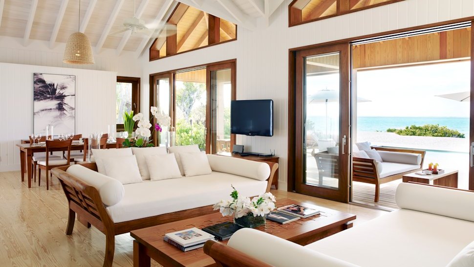 The accommodation at Parrot Cay includes standalone villas on the beach, within 100ft of the sea, and hotel-style rooms on slightly raised ground. Interiors come in whitewash with chic teak finishing.