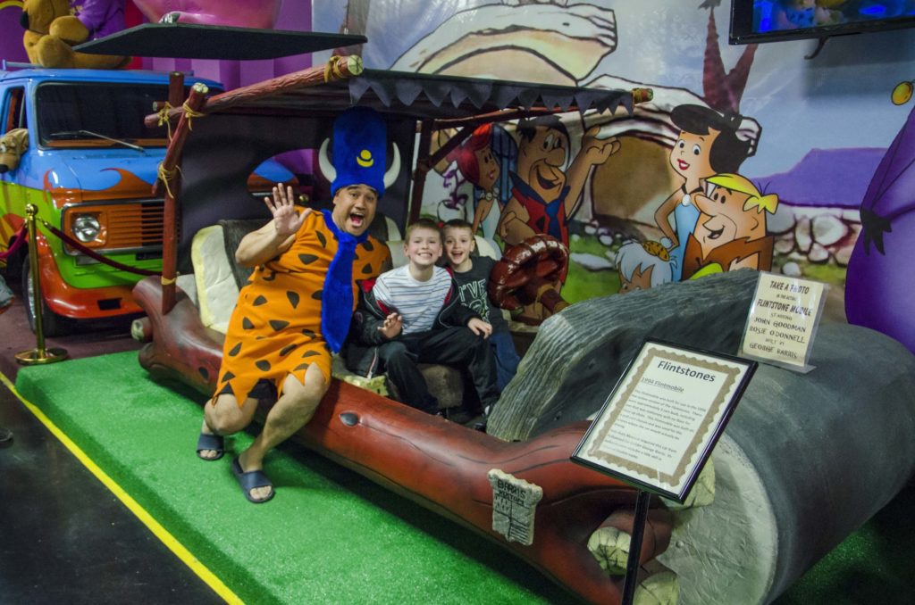 This Flintmobile was built for use in the 1994 live-action version of The Flintstones. There were approximately 3 cars built, including one that was stationary with no floor for close up shots. This Flintmobile was built on a golf-cart chassis and was used for the scenes where the car would actually be driving.