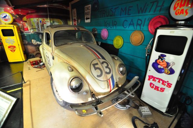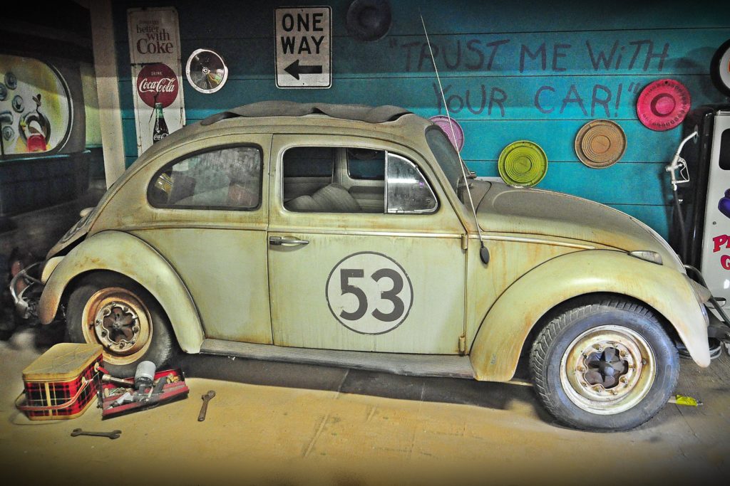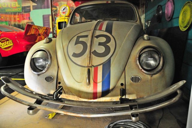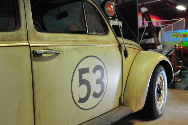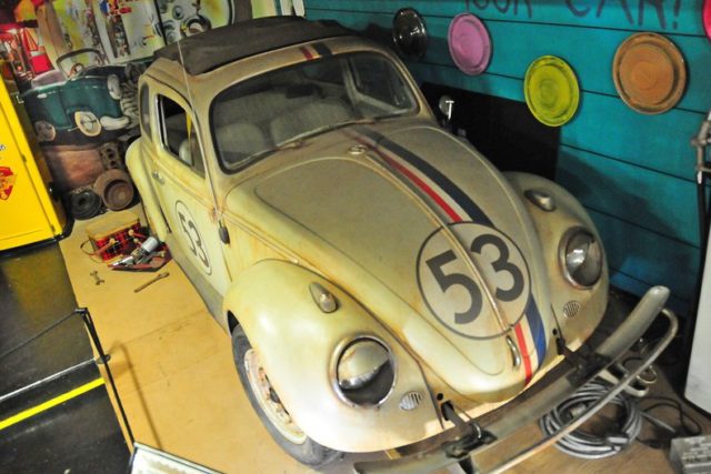 A total of 35 Herbies were built for use in the Disney film, Herbie, Fully Loaded, starring Lindsey Lohan.This screen used version of Herbie is known and the Junk Yard Personality Car. It has seven miles of wiring, dozens of electric motors, servos and electronics to bring Herbie to life.A crew of six people would operate the switchboard which would move Herbie’s, eyes, bumper, hood, doors, visors, antenna and more to give him is human like characteristics.The rust and dirt you see on this car is known as Hollywood Make Up. It’s fake! Volo Auto Museum acquired the car directly from Disney Studios. Authentication includes a title still in Disney’s name, registration and other Disney documents.