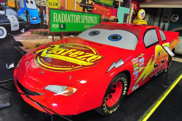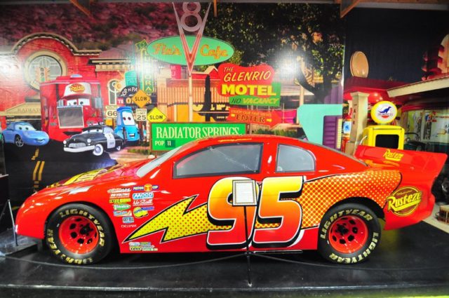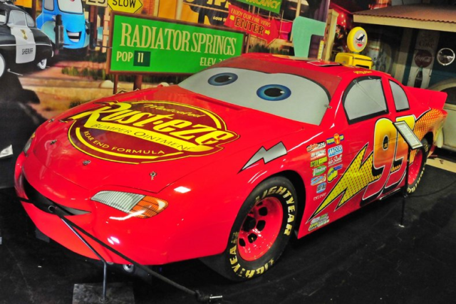 Recognized from the hit Disney Pixar film CARS. Lightning McQueen whose voice was narrated by Owen Wilson was the star Race Car that became stranded in the small town of Radiator Springs.This Lightning McQueen was built as a promotional exhibition vehicle out of a real NASCAR and is boasting over 800 Horse Power. It has custom made LIGHTYEAR tires, molded smile with teeth, widened body, an exaggerated rear fin and more.