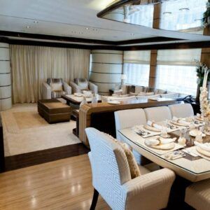 iSEA : Stunning exterior and interior styling. Owner suite on the upper aft deck with a private lobby. Spacious lounging area and a spa pool on the sundeck. Ingenious layout to maximize service and guests’ comfort. A plethora of water toys to entertain kids and adults.