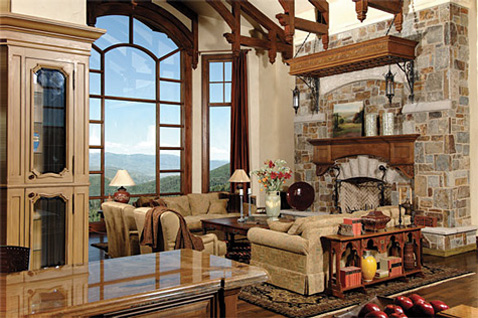 - Entry and Foyer with Beamed Ceilings & Massive Columns